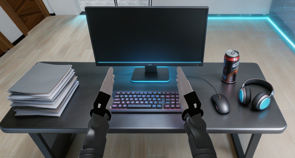 融合相机定位、深度重建、手势识别等各种标注于一体的全场景重建立体展示